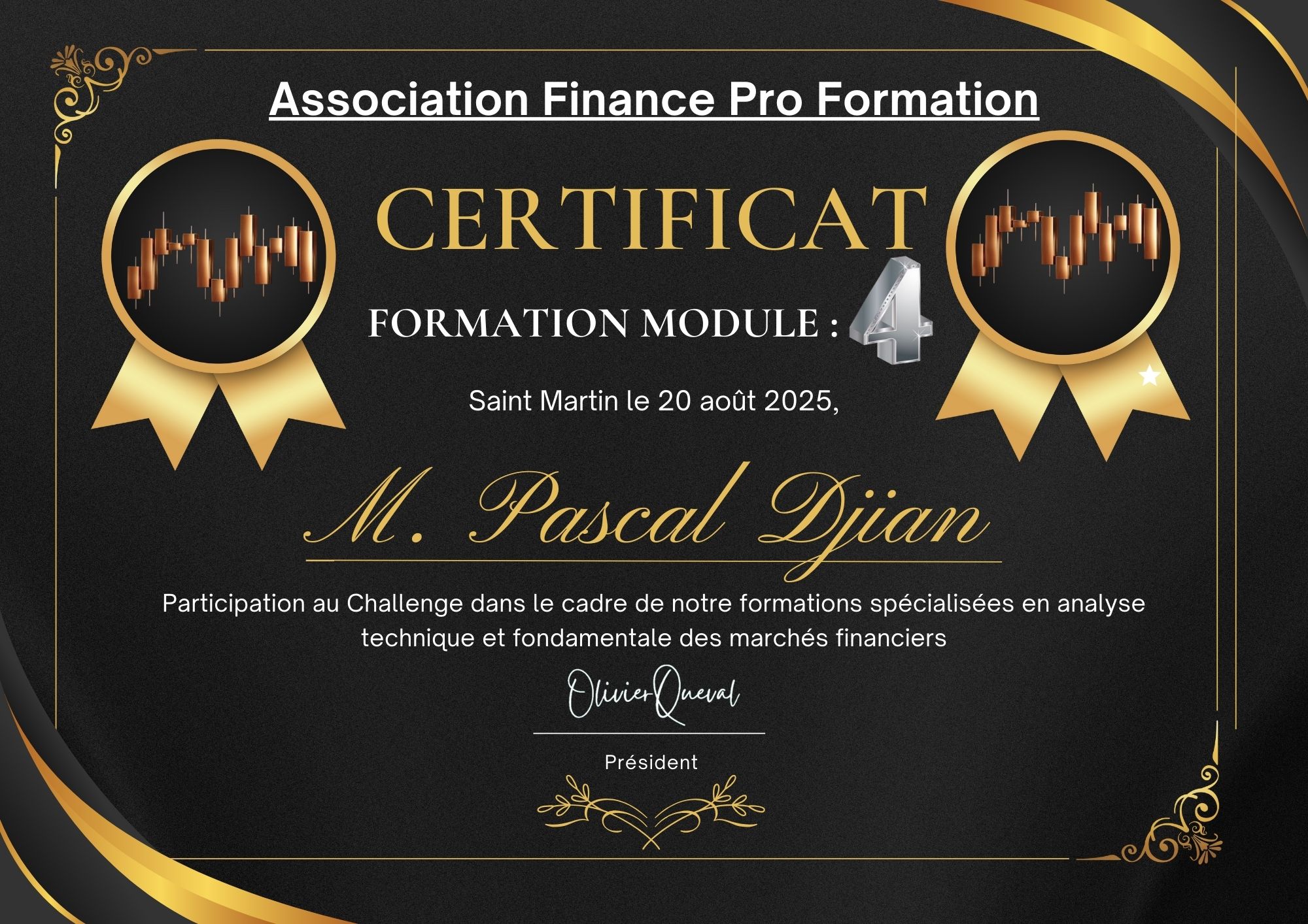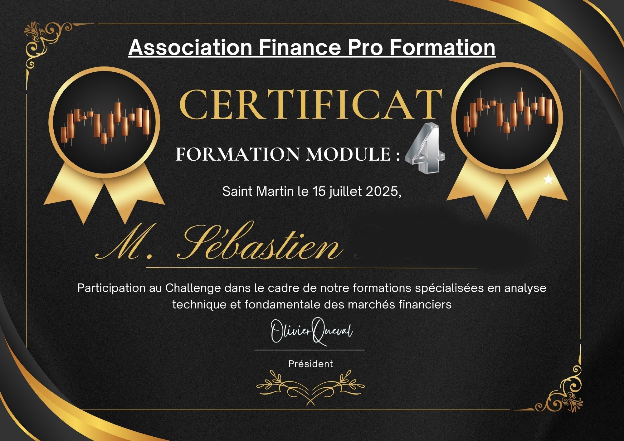 Module N°4 (Module1+2+3+4) : Devenir Trader rentable, money management, psychologie du Trader, remise du diplôme, formation sur une durée de 64 sessions par Zoom de 1 heure (4 mois environ), prix : 1990€